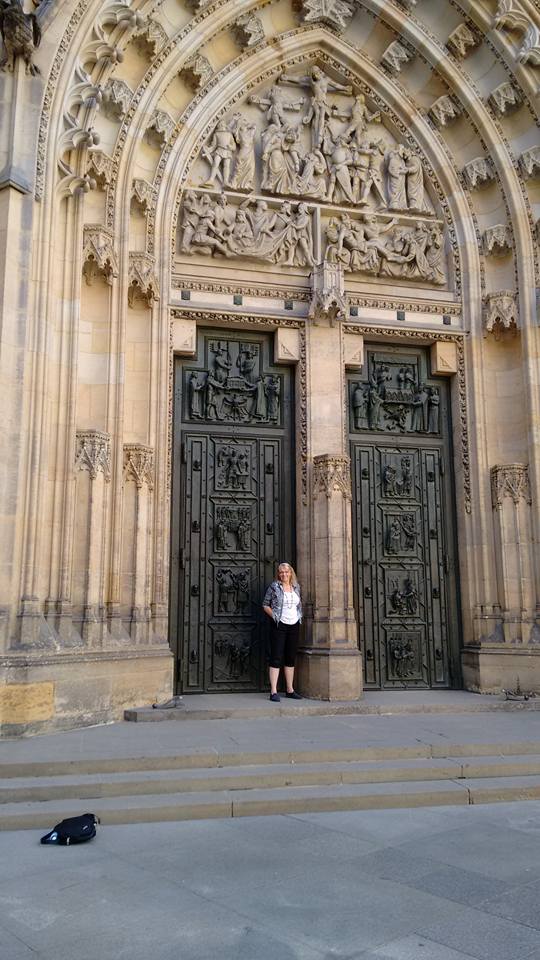 This is me at the entrance to the Prague Castle - it is totally massive! The photo below that is of a beautiful little street in the countryside outside of Prague when we went to visit the bead making factories. I also had the huge treat to meet my friend, Jana Polackova, an incredible Kumihimo artist who lives right in Prague. We had a wonderful time.